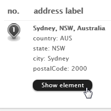 The numbered icons on the map represent your result. Clicking the right-hand list will center and zoom in the map.